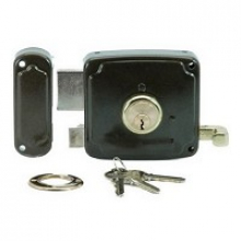 CERRADURA DE SOBREPONER DE CILINDRO CON PALANCA QUE SE ACCIONA CON LLAVE POR AMBOS LADOS Y PICAPORTE ACCIONADO CON LLAVE POR EL EXTERIOR Y CON LLAVE Y TIRADOR POR EL INTERIOR. ACABADO ESMALTADO MARRON. 3 LLAVES